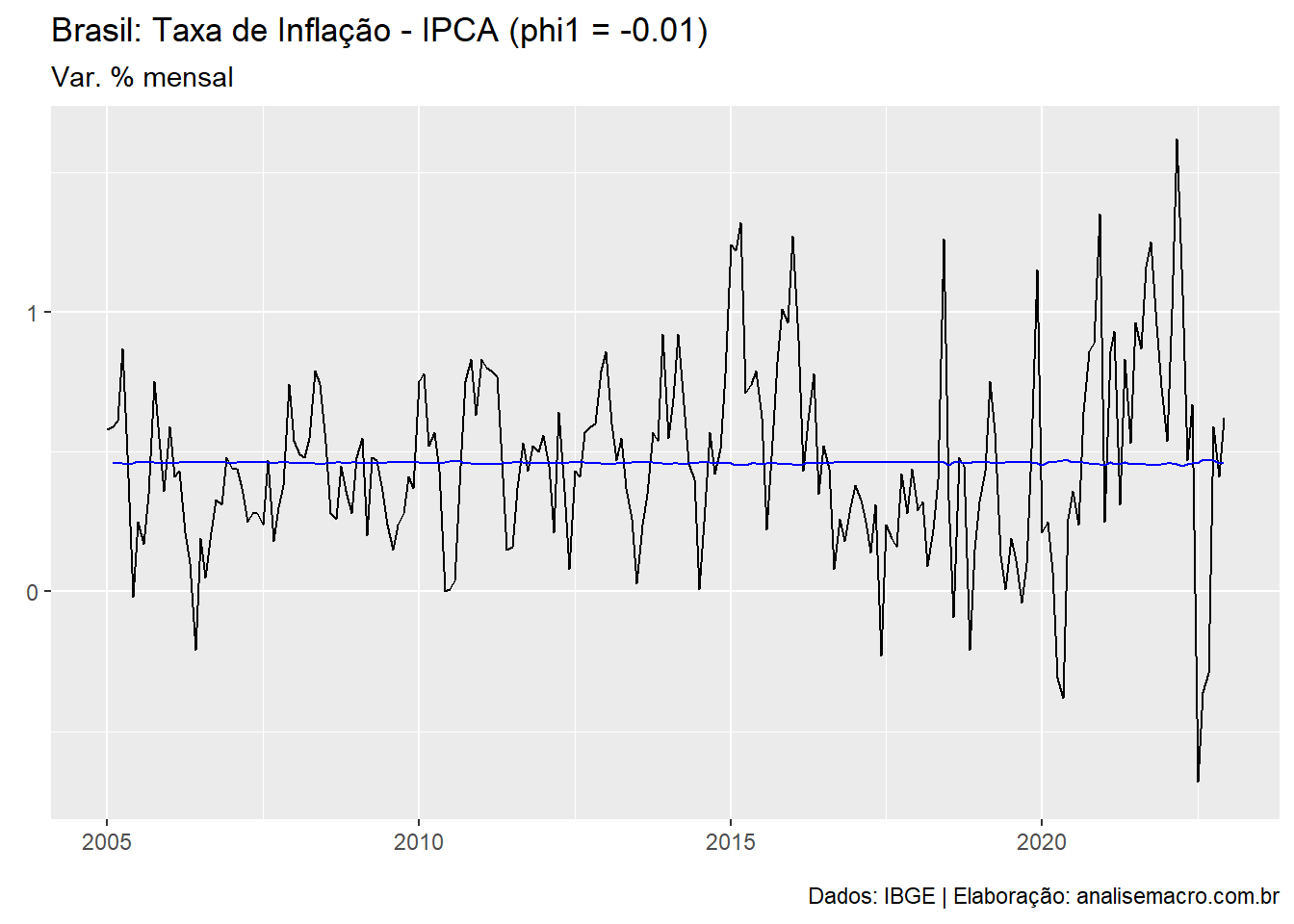 Exemplo: inércia inflacionária + choques de demanda/oferta.