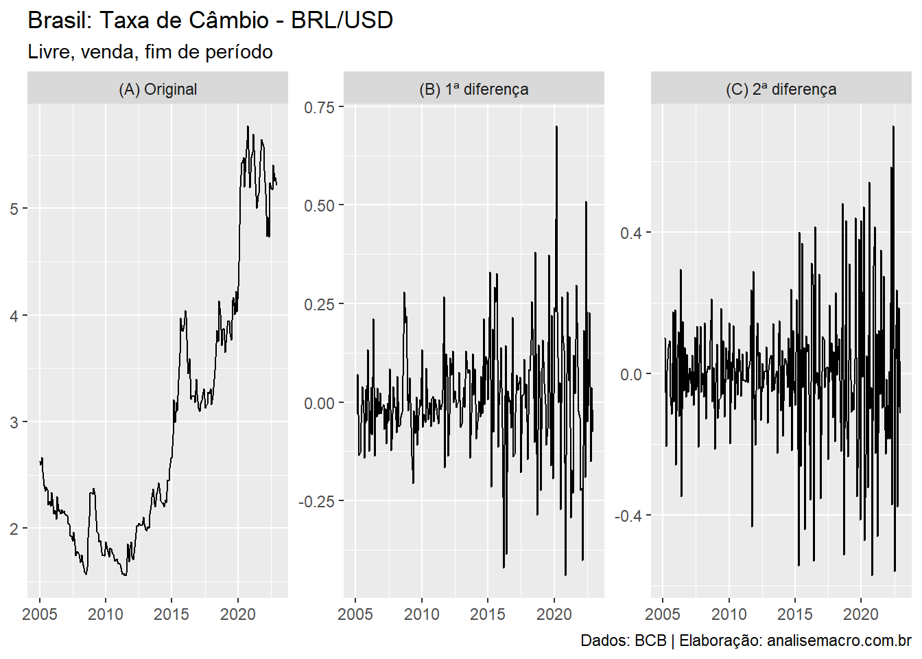 Representação: \[y'_{t} = c + \phi_{1}y'_{t-1} + \cdots + \phi_{p}y'_{t-p} \\ + \theta_{1}\varepsilon_{t-1} + \cdots + \theta_{q}\varepsilon_{t-q} + \varepsilon_{t}\]