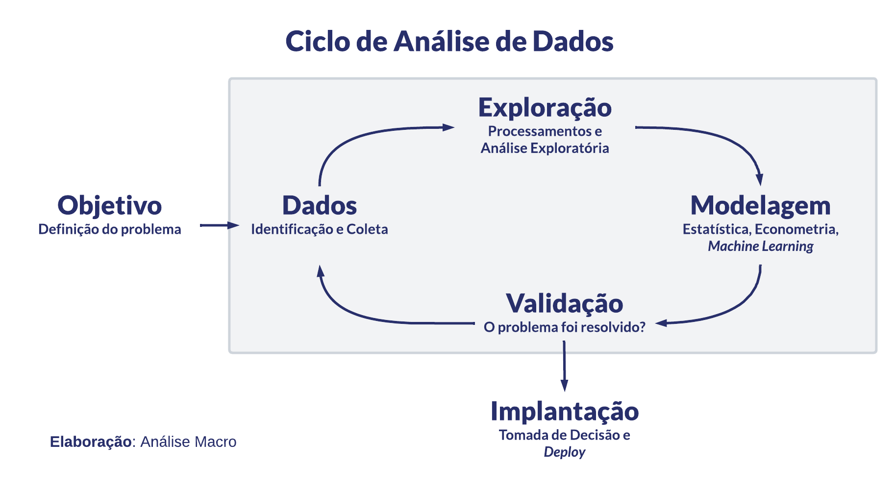 É o processo de inspecionar, processar e modelar dados com o objetivo de descobrir informações úteis e apoiar tomadas de decisão.
