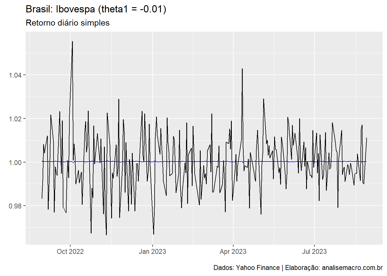 Representação: \[y_{t} = c + \varepsilon_t + \theta_{1}\varepsilon_{t-1} +\\ \theta_{2}\varepsilon_{t-2} + \dots + \theta_{q}\varepsilon_{t-q}\]